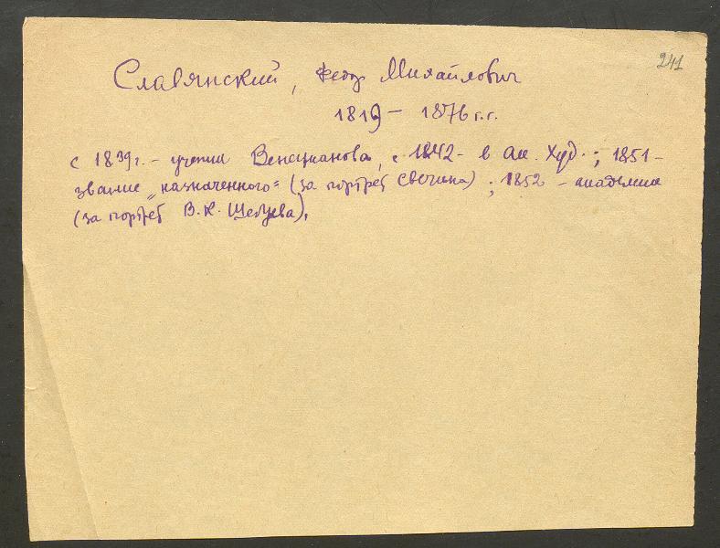 1840 г. Фёдор получил фамилию "Славянский" и работал в Эрмитаже. (хотя Венецианов ходатайствовал о