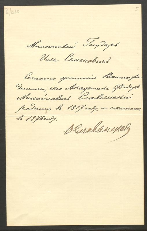 Данные о рождении приведены в формулярном списке о службе КА Ф. Славянского. [РГИА, ф.789, оп.14, д.105-С, лист 23],